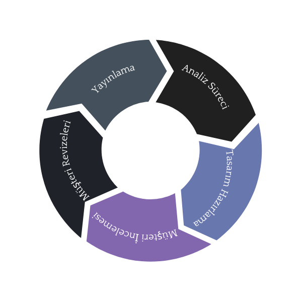 Müşteri memnuniyeti benim için önceliklidir. Tasarım aşamasında projenin içine sinmesi için makul ölçülerde revize hakkı sunuyorum. Görseldeki iş akışımızda olduğu gibi, onayınız olmadan bir sonraki aşamaya geçmiyoruz.